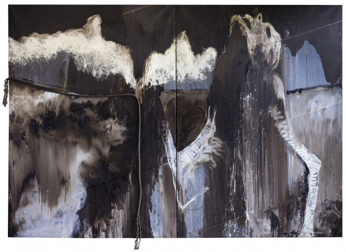 Dans son atelier toujours considéré comme lieu d’expérimentation, Lydie Arickx recherche et adapte de nouveaux supports et matériaux (bétons spécifiques, toiles Emeri, bois, tissus, bitume, résines et fibres…).